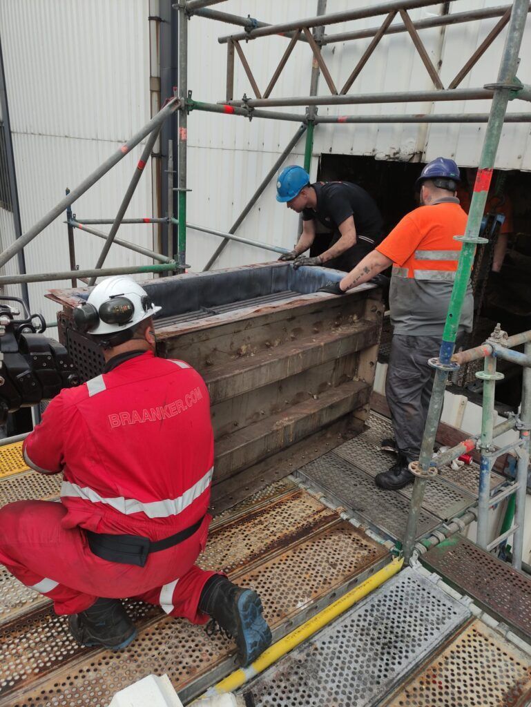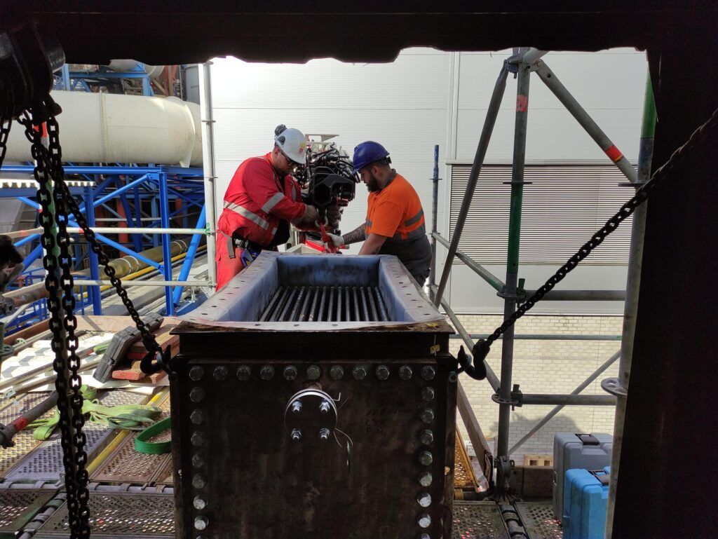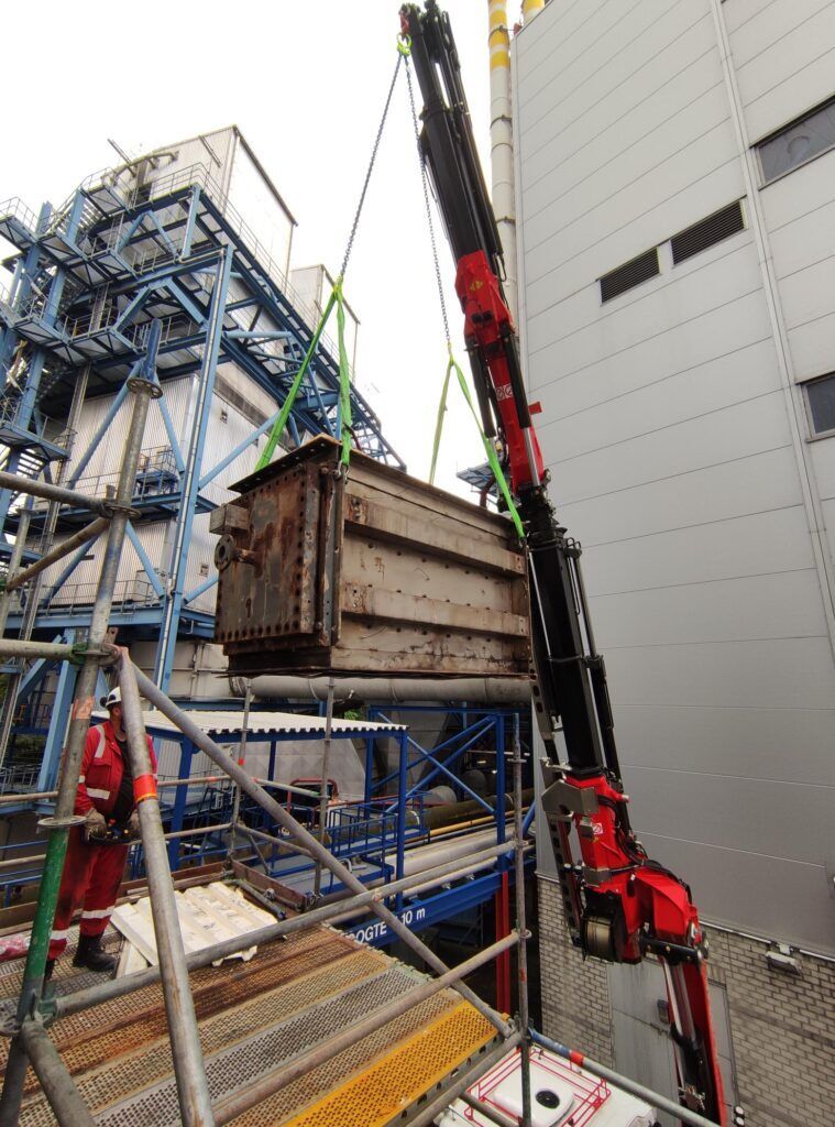 Doordat de warmtewisselaar moeilijk te bereiken was, is gebruik gemaakt van een noodsteiger en een mobiele kraan op locatie. Voor onze opdrachtgever een hele grote opluchting en voor ons een prestatie waar we zeer trots op zijn.